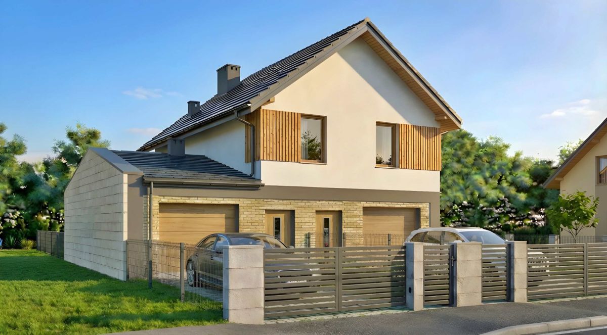Jest możliwość adaptacji na jeden, duży dom jednorodzinny z dwoma garażami