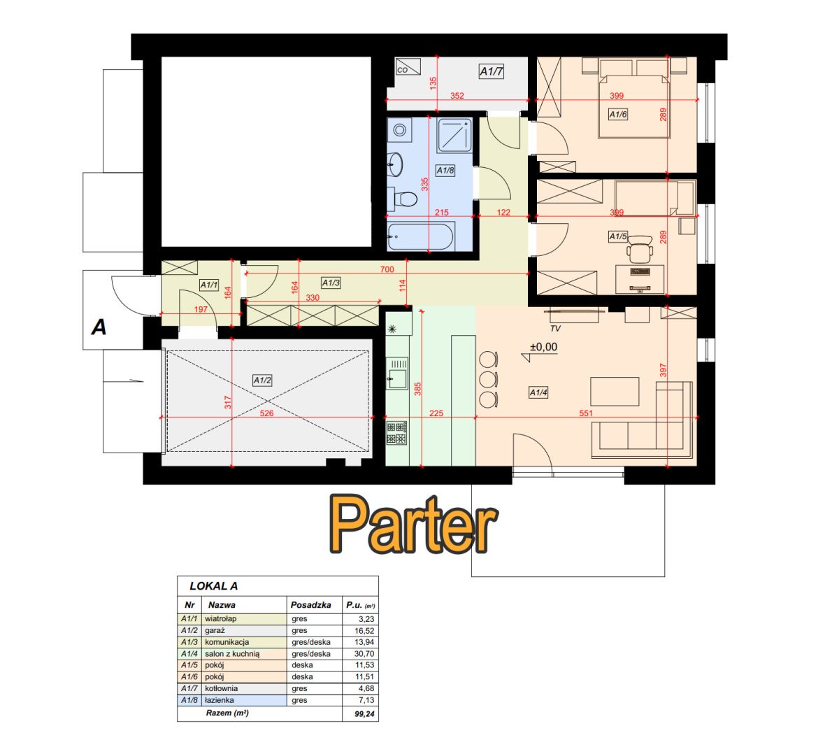Na dole pow. 99m2, z ogrodem o pow. 193m2 i garażem, za 690 tys zł