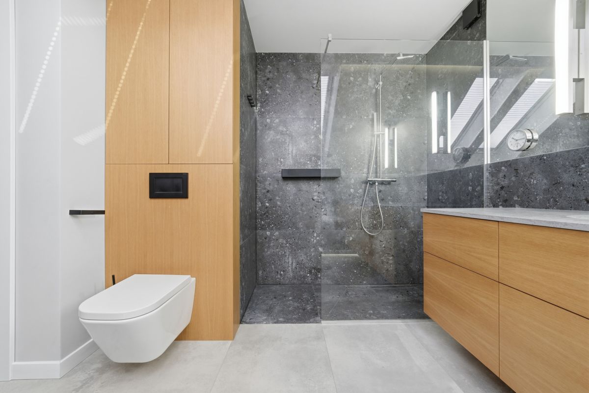- salon kąpielowy (10m²) z prysznicem walk-in oraz wanną i dużymi oknami