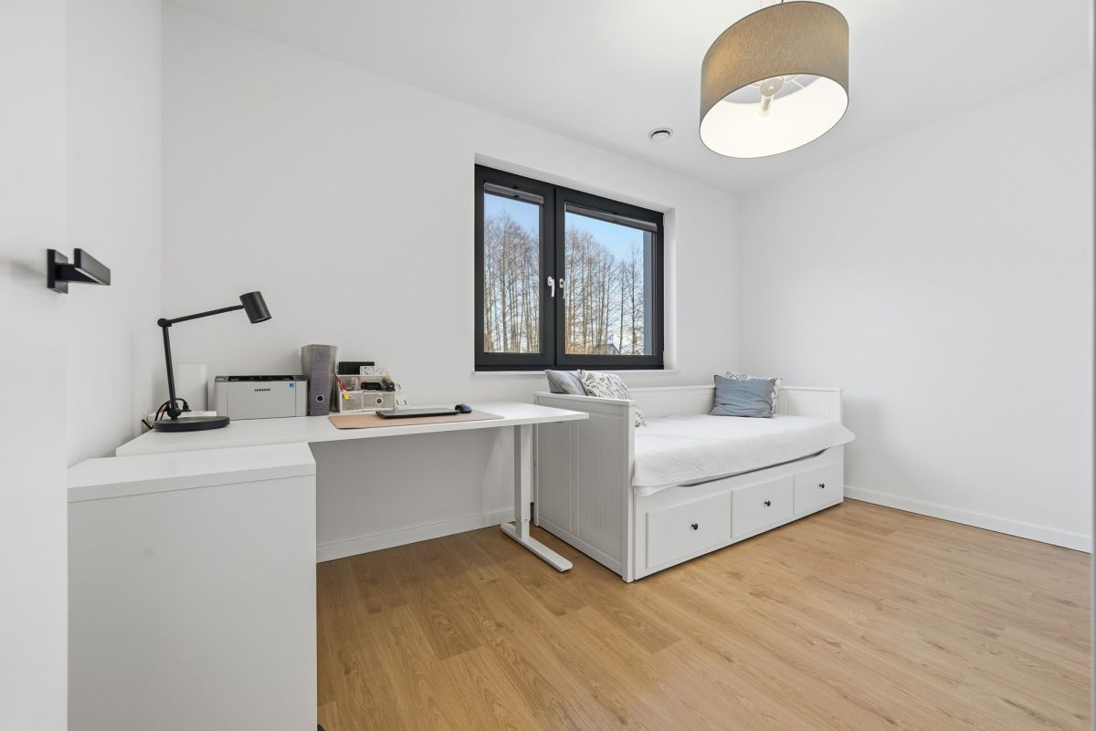Dom o powierzchni całkowitej 120m² (100m² użytkowej) wybudowany w 2019r (zamieszkany od 2021) z wysokiej jakości materiałów, zaprojektowany przez architekta wnętrz z dbałością o każdy detal. Gotowy do zamieszkania — w cenie wszystkie meble widoczne na zdjęciach (z wyłączeniem rzeczy osobistych).