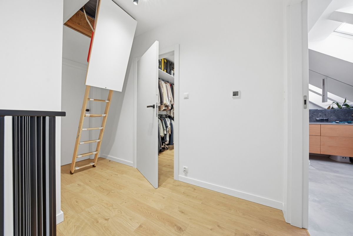 Na poddaszu (wyjście z korytarza na piętrze) znajdziemy dużą powierzchnię do przechowywania wszelkich rzeczy - począwszy od choinki na torbach podróżnych skończywszy.