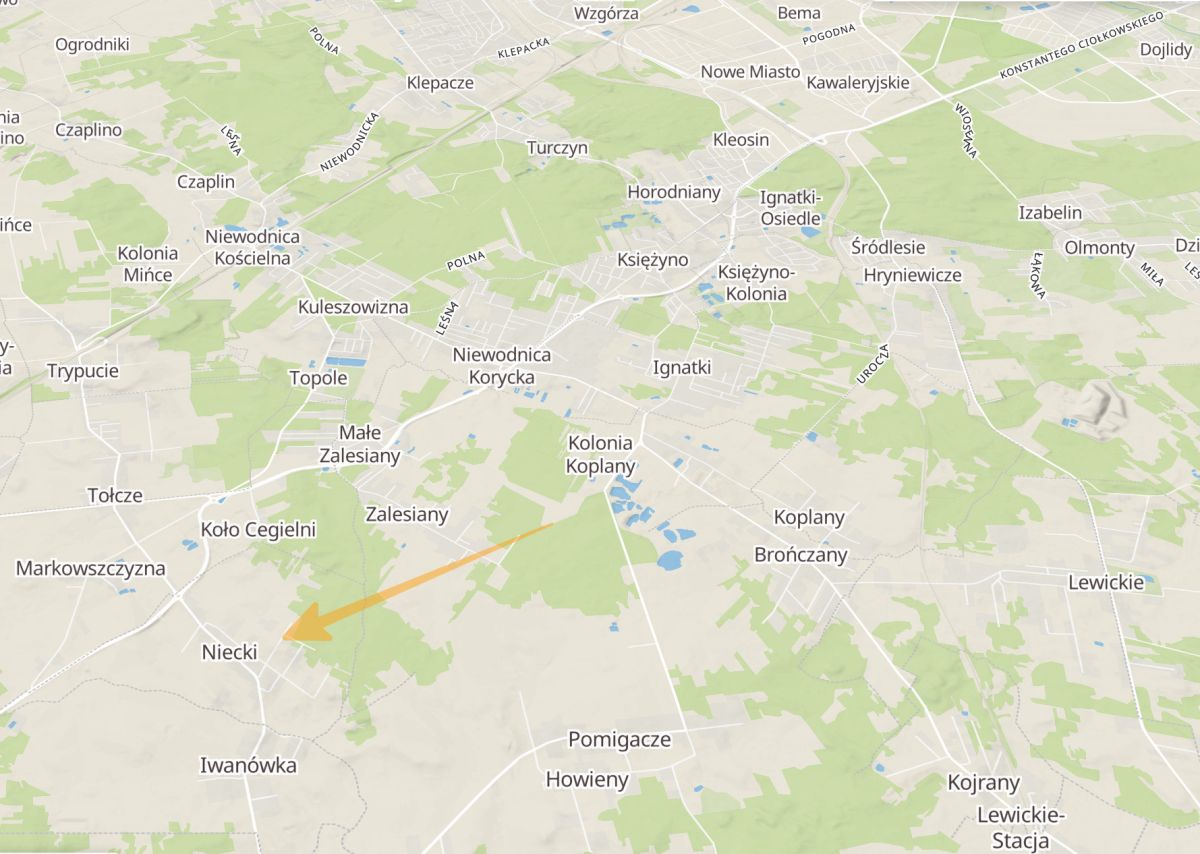 Działka o powierzchni 920m2 w miejscowości Niecki, gm. Turośń Kościelna.