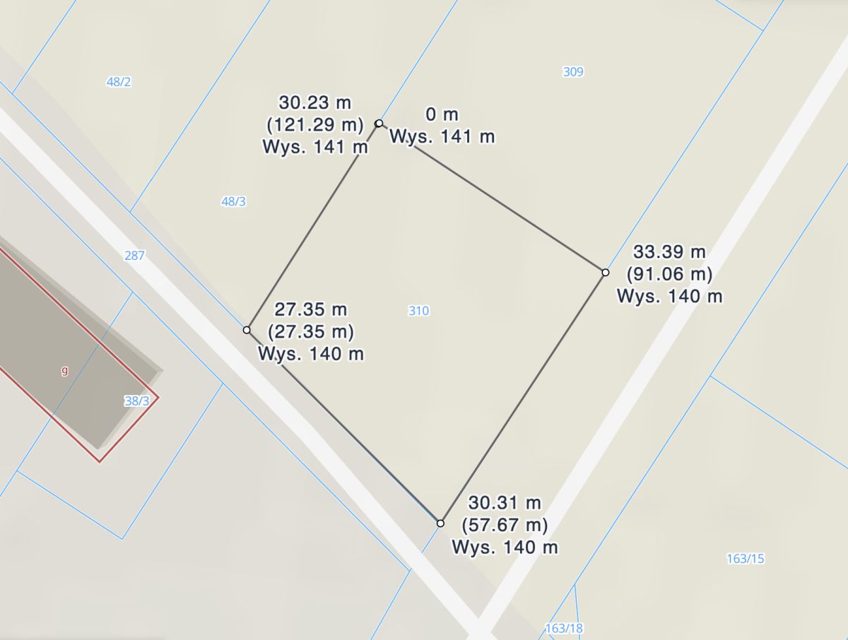 Orientacyjne wymiary działki: 27m x 33m. Numer działki 310.