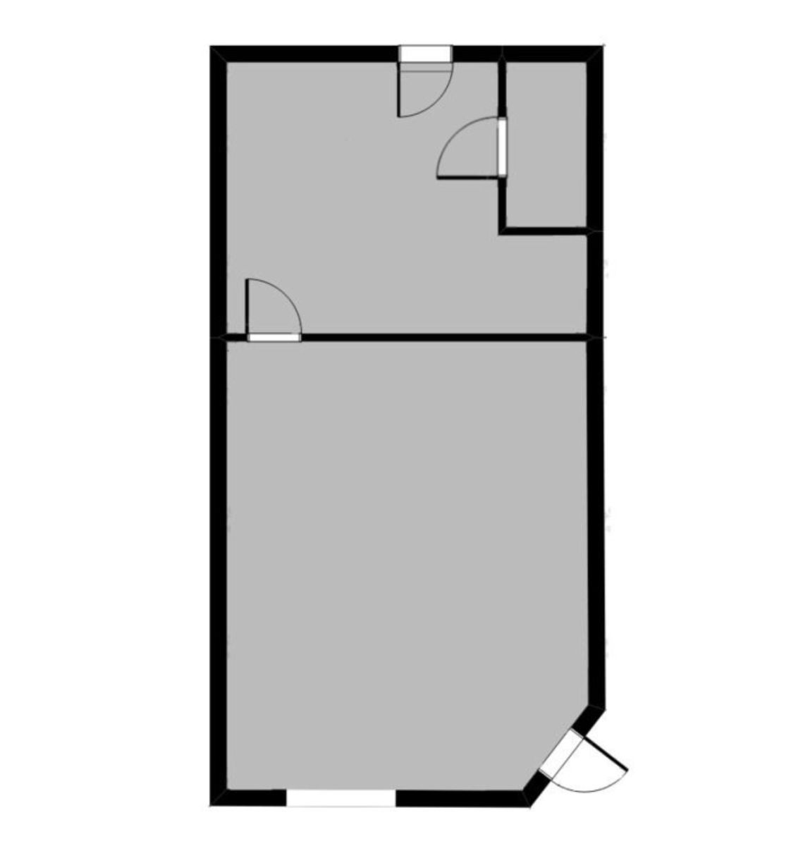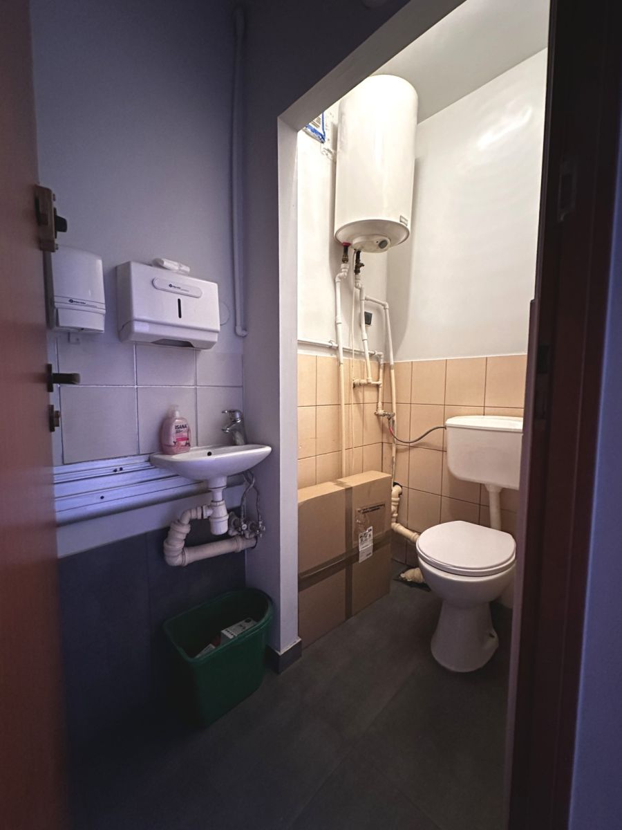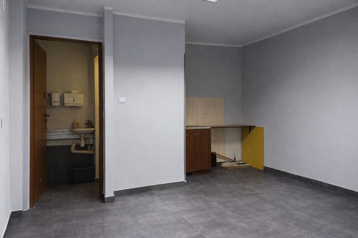 Obok jest oddzielne pomieszczenie (bez okna) wraz z częścią socjalną, łazienką z WC i wejściem od tyłu do lokalu.