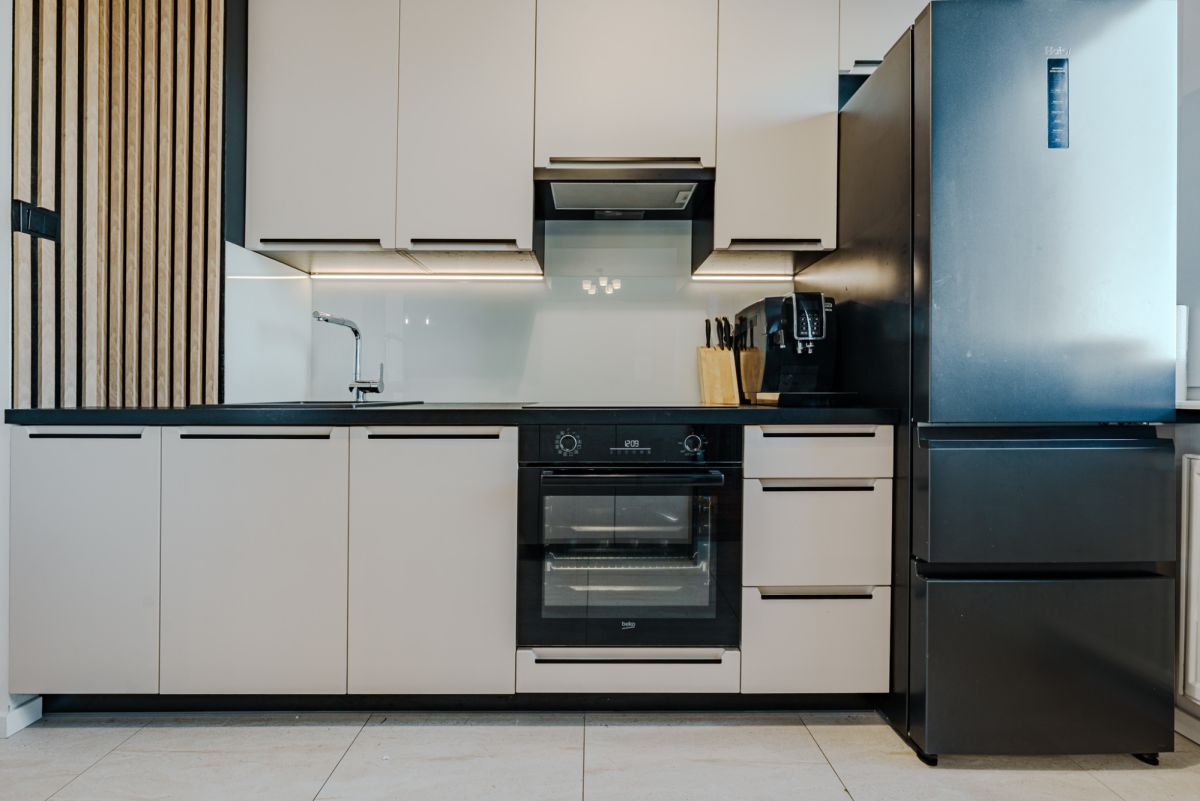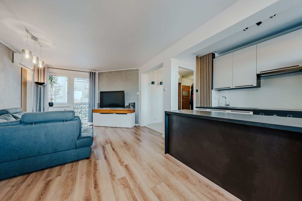 Wyposażenie: nowa kuchnia (2025) z AGD (piekarnik, płyta, zmywarka, okap, lodówka), klimatyzacja, pralka, zabudowy stałe. Meble ruchome do uzgodnienia.